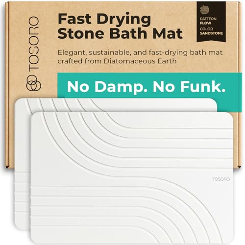TOSORO – badmatta, kiselgur jord halkfri sten duschmatta – snabbtorkande absorberande badstensmatta – elegant och modern design, lätt att rengöra (23,5 x 15 sandsten) – 2 st
