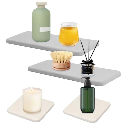 NiuYichee Vattenabsorberande tvålfat av kiselgur, set med 4, underlägg, handtvålhållare, stenbricka som används för växter och toalettartiklar i det moderna hemmet