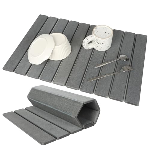 BoxedHome Sten torkmatta, kiselgur sten disktorkmatta, 60 x 40 cm vikbar sten torkdyna, snabbtorkande stenmatta kök halkfri diskdräneringsmatta för handfat diskställ marmor bänkskiva (ljusgrå)