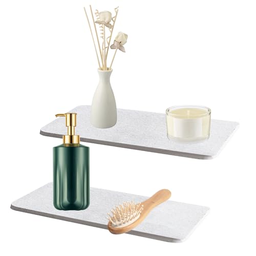 Razborci 2-pack badrum handfat sminkbrickor, kiselgur sten köksbänk caddie skål tvåldispenser svamphållare, vattenabsorberande matta organiserare för växt, kosmetisk flaska, grå beige, 20 x 9,7 cm