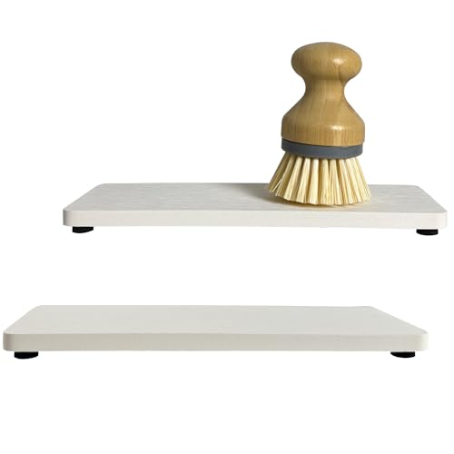Razborci Instant Dry Sink Caddy Kök Handfat Organiserare, Snabbtorkande Kiselgur Sten Handfat Bricka Svamp Hållare Tvålskål, Badrum Bänk Smink Dispenser Tandborste Flaska, Vit, 25 cm x 10 cm