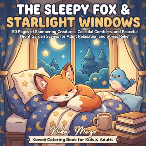 The Sleepy Fox & Starlight Windows: 50 Pages of Slumbering Creatures, Celestial Comforts, and Peaceful Night Garden Scenes for Adult Relaxation and ... Kawaii Coloring Book for Kids & Adults