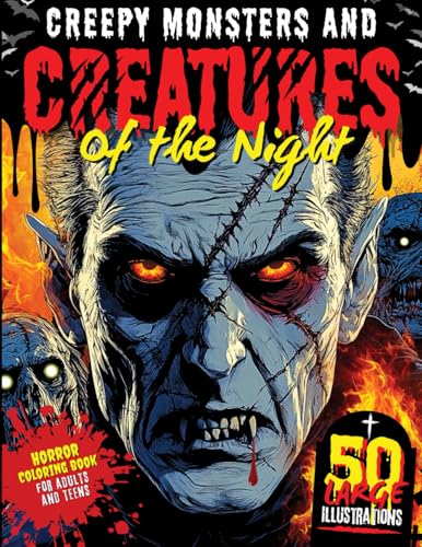 Creepy Monsters and Creatures of the Night: A Dark Fantasy Adult & Teen Coloring Book, 50 Intricate Horror Illustrations of Gothic Vampires, Zombies, Skulls with Fascinating Myths & Pop-Culture Facts