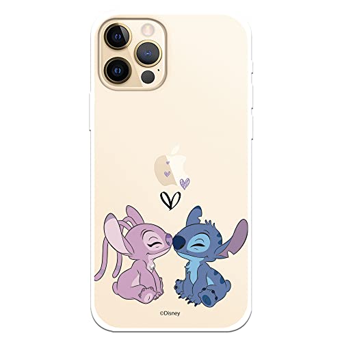 Officiellt fodral till iPhone 12-12 Pro med Lilo & Stitch - Ängel och Stitch Kiss för att skydda din mobil, flexibelt silikonfodral med officiell Disney-licens