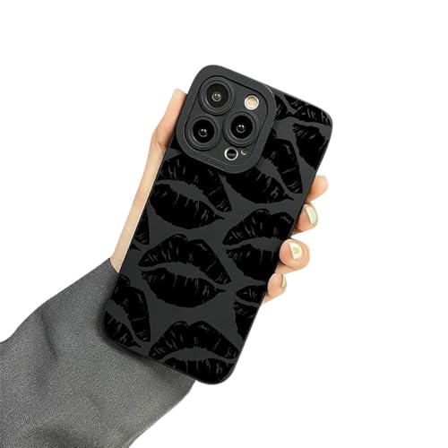 Cutecasee Lips Kiss Print Soft Silicone Phone Case for iPhone Compatible with iPhone 14 Pro Max, Black
