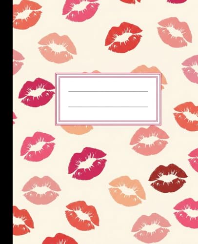 Cute Lip Print Pattern Composition Notebook: A Preppy Aesthetic Kiss Mark Journal | Pink and Red Lipstick Notebook for Teen Girls, Students, and Valentine's Day