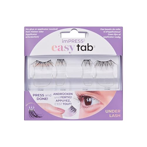 KISS imPRESS Press-On Falsies EASY TAB självhäftande ögonfransar, svart, 'autentisk natural", 1 par 5 mm – 7 mm inre naturliga volymögonfranskluster och 1 par 7 mm – 9 mm yttre halva ögonfransar med