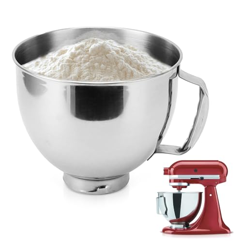 KITOART Blandskål i rostfritt stål för KitchenAid 4,5 quart lutande huvudställmixare, KSM150 rostfritt stål blandarskål utbyte, 4,5 QT/5QT skål för KitchenAid Mixer, silver