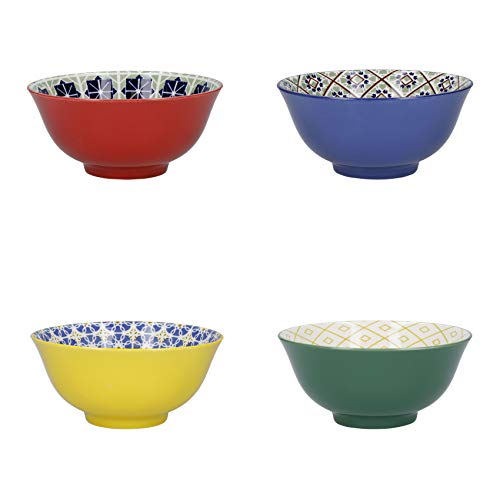KitchenCraft World Of Flavors Skålar, Mönstrade, 15 cm, 4-pack, Blandade Färger, KCBOWL15PK4WOF