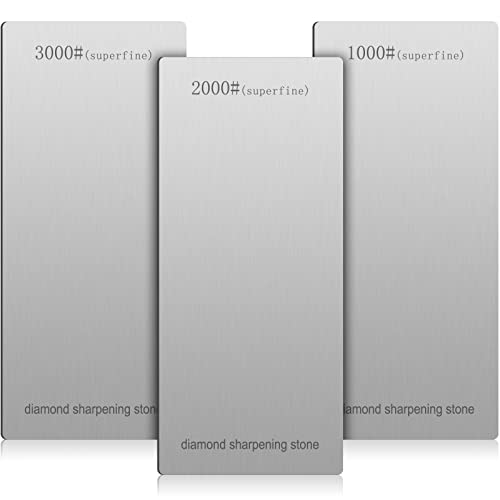 3 Pieces Diamond Sharpening Stone Diamond Knife Sharpener Plate Honing Whetstone for Kitchen Sharpening Dull, Blunt or Tired Edges (1000/2000/ 3000 Grit)
