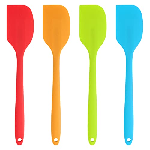 Joeji's Kitchen Set med 4 silikonspadar för matlagning Bakning - Non-stick köksredskap - Cake Smet Cream Scraper - Värmebeständig och matsäker - Orange, Blå, Grön, Röd