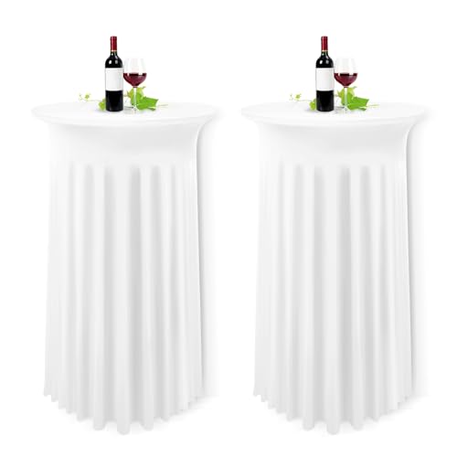YMHPRIDE 2-pack cocktailbordsskydd spandex stretch vit rund bordsduk med kjol, 81 x 109 cm uppgraderad modell cocktailbordskjol monterad hög topp stretch bordsduk för fest bröllop bankettbord