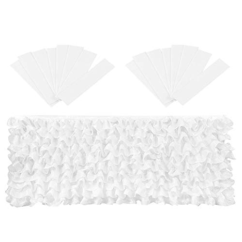 518 cm vit polyester bordskjolar för rektangulära bord, rynkfria kuddar tyg tyllbord kjol 45 cm för bankett, bröllop födelsedag baby shower handel möte tårta dessertbord (inget topptäck)