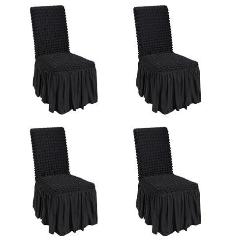 VEVOR Fällbara stolskydd i stretch, spandex, universellt anpassat stolskydd med kjol, avtagbara tvättbara skyddande överdrag, för bröllop, semester, bankett, fest, firande, middag (4 st svart)