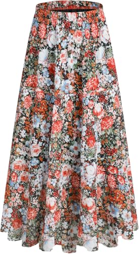 Zeagoo Kjol dam långa eleganta kjolar hög midja maxikjol med dragsko enfärgad ledig fritidskjol bröllop cocktail kjol, Grön, XXL