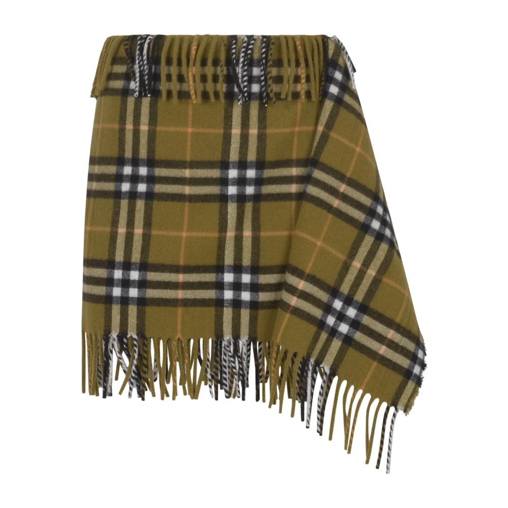 Burberry, Kjolar , Dam, M, Kashmir, Rutig kjol i ull och kashmir med fransar