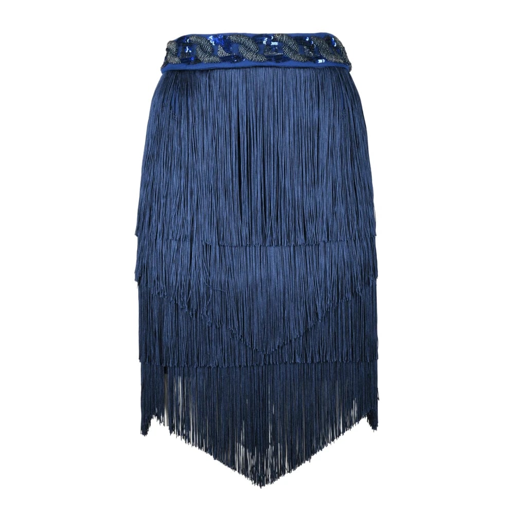 Zookey Kjol med paljetter och tofsar för magdans, festkjol med fransar, höftsjal, dansdräkt, mini-omlottkjol, för kvinnor och flickor, BLÅ, 44 SE