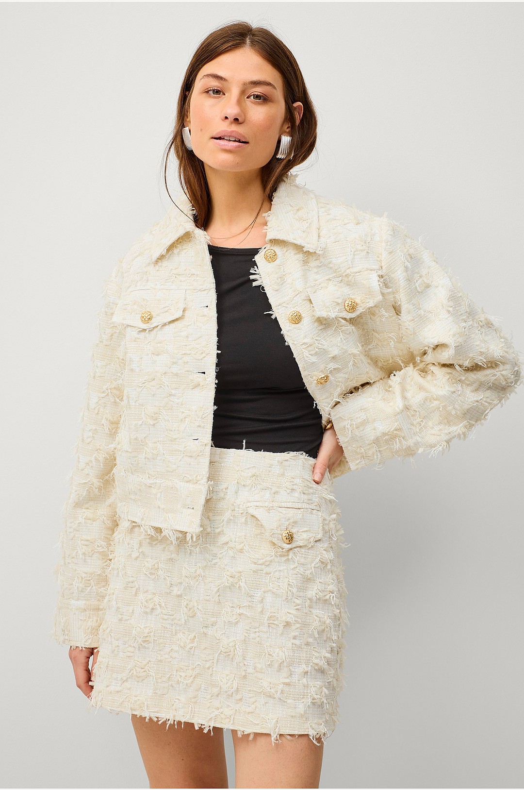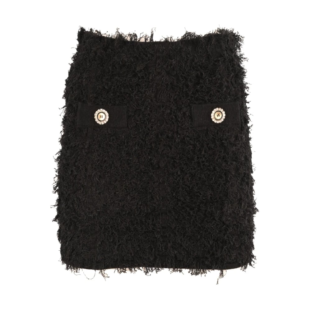 Balmain, Kjolar , Dam, S, Tweed, Glittrig kjol i tweed med fransar