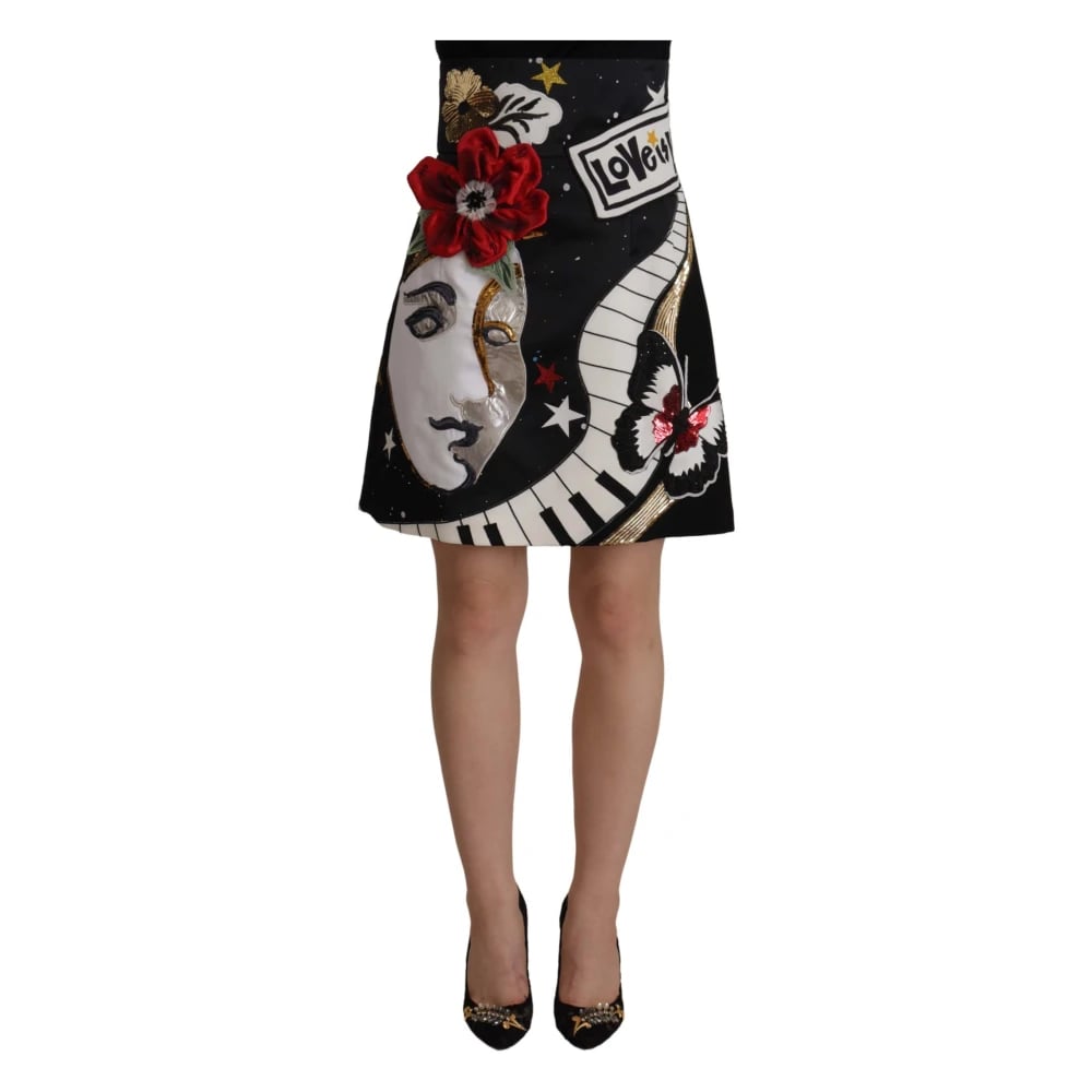 Dolce & Gabbana, Kjolar , Dam, 3Xs, Paljetter, Svart Love Clock Paljetter Piano Kjol