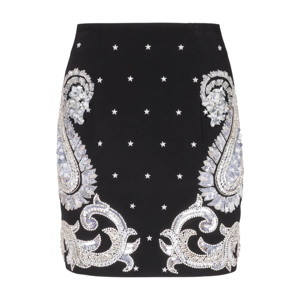 Balmain, Kjolar , Dam, XS, Paljetter, Paisleymönstrad kjol med stjärnor