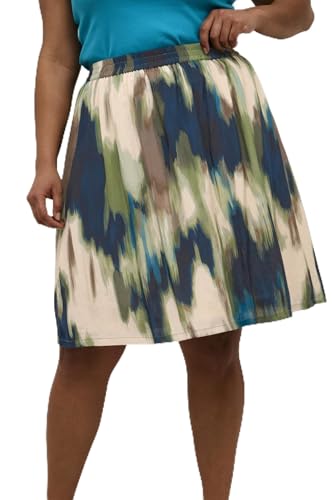 Kaffe Curve Plus-size dam knälängd kjol elastisk midja tryckt, Grön, brun blekt grafisk, 48 stor