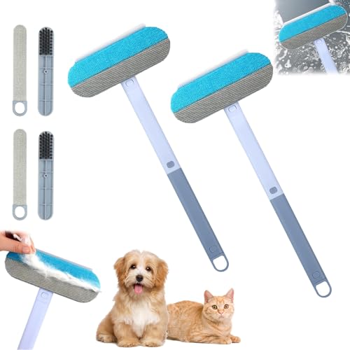 3-i-1-borttagare for husdjurshår, tvättbar luddborste for hund- och katthår, avtagbar klädborste for husdjurshår, återanvändbar rengöringsborste for husdjurspäls for mattor, kläder, soffa, glas(2pcs)