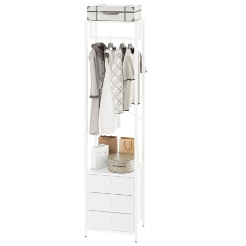 YMYNY Klädhängare med icke-vävd låda, fristående hög garderobsorganisatör, klädställ med stång, hög klädbyrå för sovrum, vardagsrum, entré, 39 × 29 × 179 cm vit HGR001W
