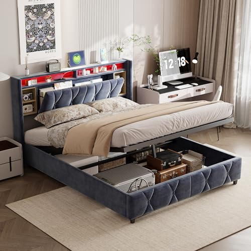 Klädd säng 180x200, säng med bagageutrymme och lamas moderna dubbelsängar mjukt sammetstyg med hydraulisk förvaringsutrymme och sänggavel, utan madrass (grå B, 180 x 200 cm)