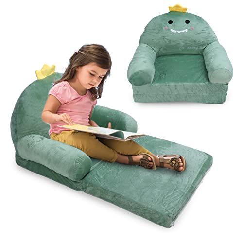 Barnsoffa Utfällbar Mjuk Småbarnsstol, Svamp Dinosaurihopfällbar Småbarn Armstöd Stol Säng Klädd 2 i 1 Flip Open Soffa Soffa för Spädbarn Småbarn Present (2 Däck 41x18x58cm)