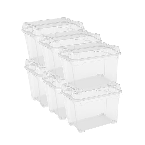 Keter Set med 6 plastlådor med C-låda S lock, transparent, perfekt för kläder, skor och förvaringslådor, lämplig för skåp och garage, 11 L, 37 x 26 x 14 H cm