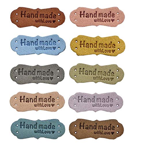 Juland 50 stycken handgjorda konstläderetiketter etiketter PU kläder väska syarbete dekoration gör-det-själv klädetiketter rektangel sy vävetiketter läderetikett skyltar lappar handarbete – 1,5 x 4,2