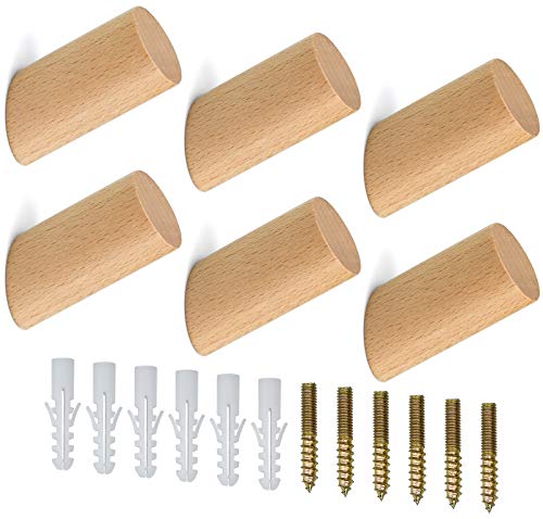 6 st träklädkrokar naturliga väggkrokar bokkrokar 3 x 6 cm klädkrokar hängare för kläder halsduk hatt väska med skruvar
