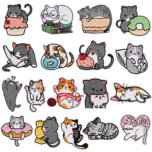 NAMIS Stryk på lappar 18 st djur lappklistermärken katt stryk på lappar broderi applikationslappar kit barn stryk på lappar söta märken tygreparation lapp för t-shirt jeans kläder väska jacka