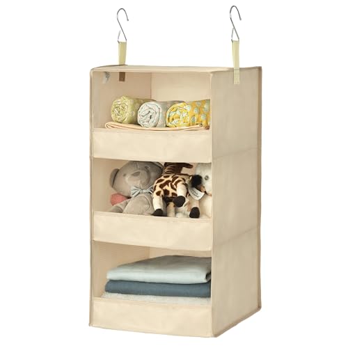 GRANNY SAYS Hängande Garderobsförvaring 3 Hyllor, Paket med 1 Hängande Klädförvaring, Hängande Förvaring för Garderob, Hängande Organisatör i tyg för Klädtillbehör, Hanging Storage Shelf, Khaki