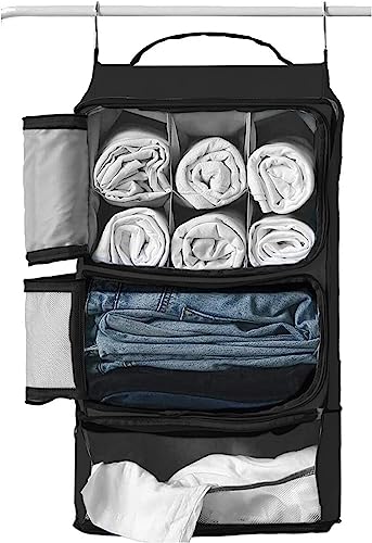ARTOS Hängande garderobshyllor och förpackningskuber – bärbar garderobsorganisatör, 3-hyllor hopfällbar komprimeringsförpackning kuber resväska för klädförvaring – bagageorganisatör och