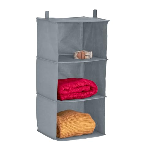 GRANNY SAYS Hängande Garderobsförvaring 3 Hyllor, Paket med 2 Hängande Klädförvaring, Hängande Förvaring för Garderob, Hängande Organisatör i tyg för Klädtillbehör, Hanging Wardrobe Organizer, Grå