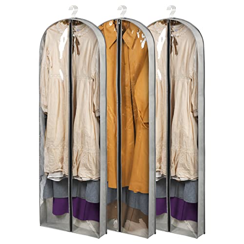 Belinlen 3-pack 152 cm långa klädväskor för hängande klädförvaring, genomskinliga malsäkra kostymer överdrag med 10 cm kil för garderobsförvaring resor, plastskydd för klänningsklänningar, rockar,