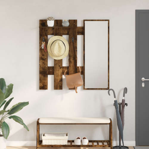 vidaXL Väggmonterad Klädhängare Rökfärgad ek 65 x 3 x 100 cm - 874503