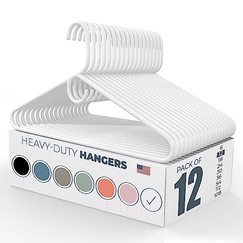 12-pack tillverkad i USA kraftiga klädhängare i plast, 20 30 50 100 paket tillgängliga, starka plasthängare, jackrockhängare, tjock plasthängare för garderob och klädhängare (vit)