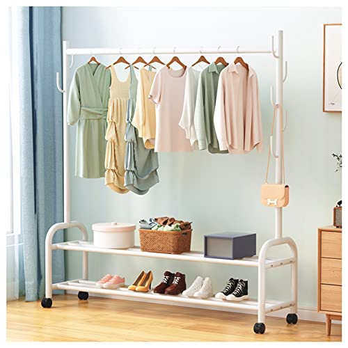 LXGJSQY Klädhängare metall klädhängare med hjul och krok upp kläder visningsstativ sovrum klädstång rullande klädhängare entré förvaring skohylla (storlek: 60 x 35 x 170 cm, färg: guld)
