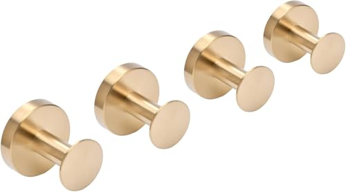 Beelee Borstad guld väggkrokar 4-pack badrum handdukskrokar rockkrokar, guld tillbehör slitstark hatt ställning klädhängare, BA9777BG-4