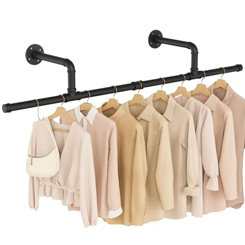 Yawinhe Industriell vägghänge, klädhängare för vägghängning, 130 cm, avtagbar retro metallklädhängare väggmonterad för sovrum, kök, 1-pack, svart