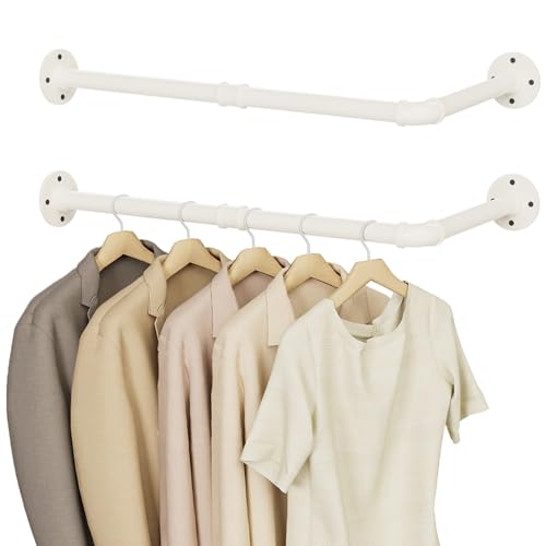 YheenLf Vägg klädhängare, upphängningsstänger för industriell rörledning, industriell design, enkel montering, för små utrymmen, 60 × 30 cm, 2-pack, beige