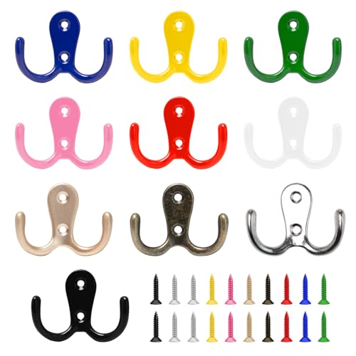 Bofanze 10 stycken dubbelväggskrokar väggkrokar med skruvar färg vägg klädhängare metall dubbel klädhängare hängare för kappa, nyckel, sovrum, vardagsrum