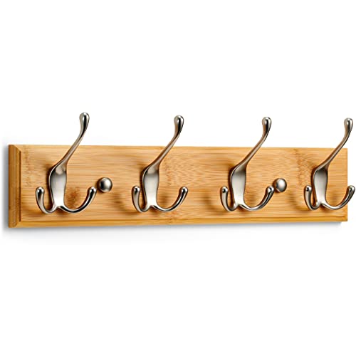 LARHN Klädkrokar för Vägg - Klädhängare Vägg med 4 Krokar i Matt Nickel - 42 cm