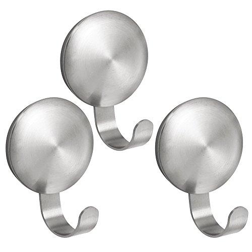 iDesign Klädkrokar för vägg, små klädhängare i rostfritt stål utan borrning, set med 3 självhäftande krokar för hall, badrum eller kök, matt silver