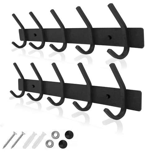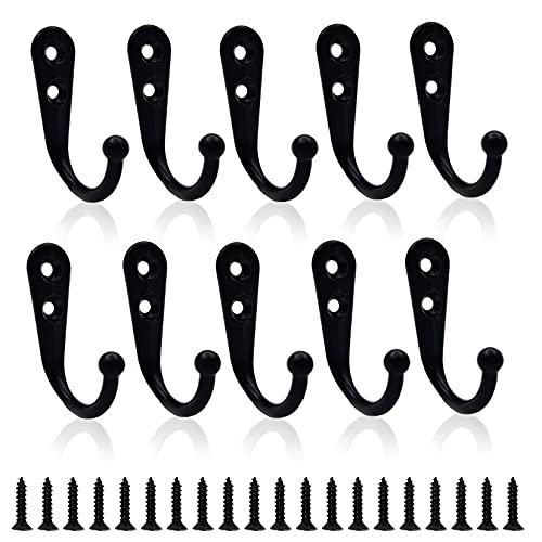 Bolatus 12 stycken klädhängare, krokar garderob dubbla väggkrokar retrokrokar vägg metall klädkrokar vintage med 48 skruvar för garderobskrokar badrum kök (svart)