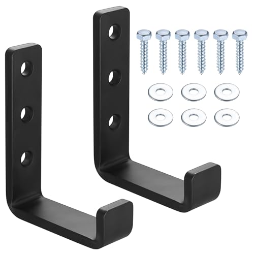 2 st robusta väggkrokar, J-krokar för garage, svarta universella skruvkrokar, klädhängare, solida krokar, för upphängning, vägg för skrymmande föremål (2 st att förlänga)
