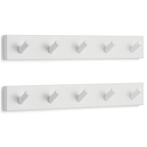 LARHN Vita Klädkrokar för Vägg (2 st.) - Klädhängare Vägg med 5 Krokar - 43 cm