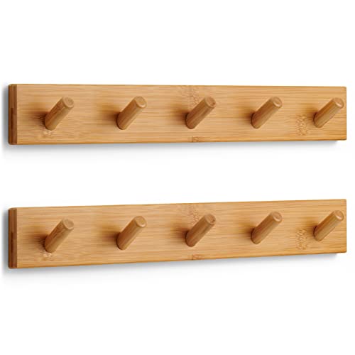 LARHN Trä Klädkrokar för Vägg (2 st.) - Klädhängare Vägg med 5 Krokar - 43 cm